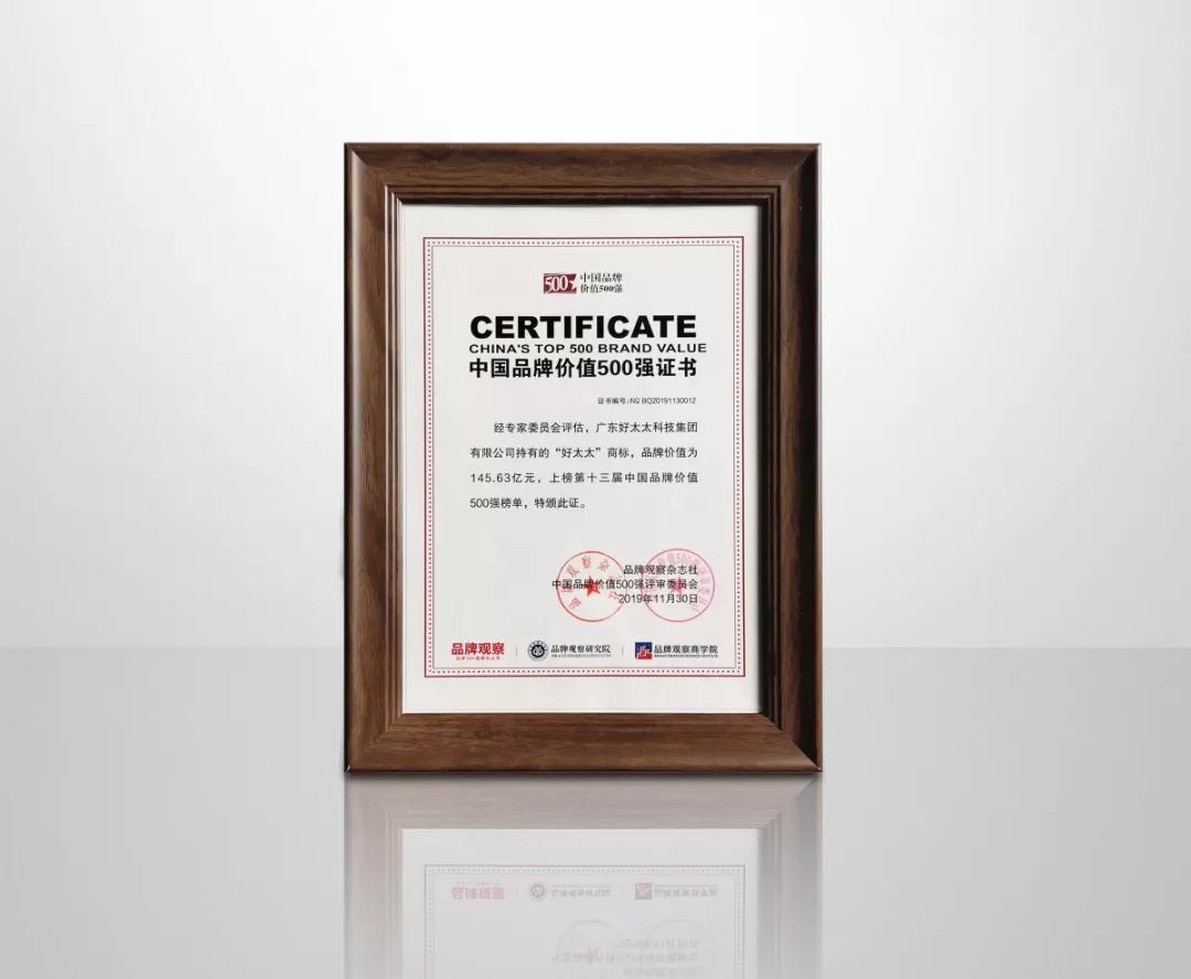上榜中国价值500强榜单