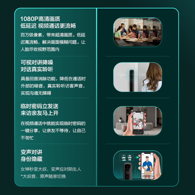 相当于装了一个随时可打开的直播监控画面,使用手机可查看锁前的实时画面,随时远程监察门外的一举一动。