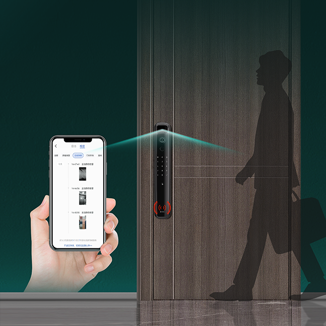 搭载红外传感器,感应门外一米范围内,有陌生人异常逗留就会触发侦测抓拍,并推送实时拍摄的图片到手机