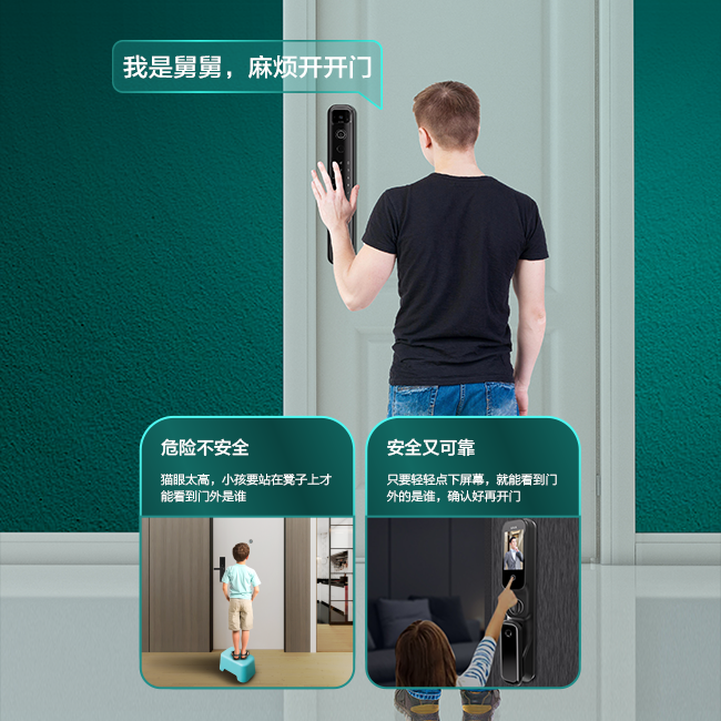 平时也可通过按键主动唤醒查看,从此不再担心孩子给陌生人开门。